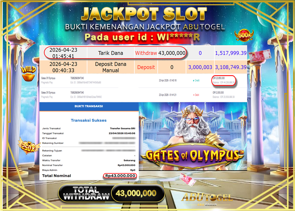 Banyak situs hanya janji, tapi di ABUTOGEL kamu bisa melihat bukti jackpot toto togel online gacor secara nyata. Mulai dari kemenangan harian, jackpot besar 2Dā3Dā4D, hingga bukti transaksi kemenangan yang benar-benar masuk ke saldo member.