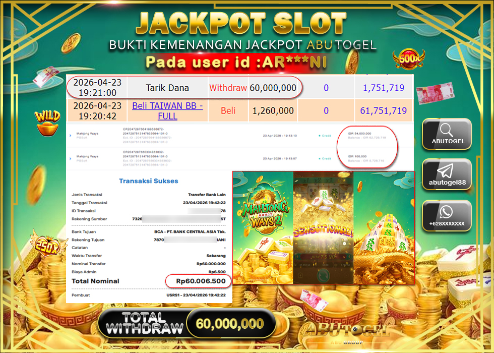 Bukti jackpot bukan untuk pamer, tapi sebagai bukti kredibilitas. Di ABUTOGEL, kamu bisa menilai langsung apakah jackpot benar-benar dibayar, proses transaksi cepat, dan sistem berjalan transparan.