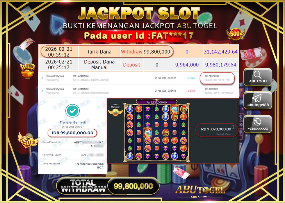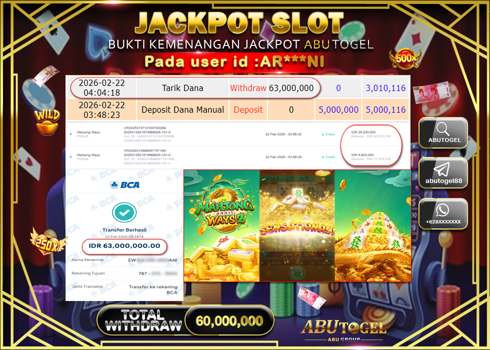 Bukti jackpot bukan untuk pamer, tapi sebagai bukti kredibilitas. Di ABUTOGEL, kamu bisa menilai langsung apakah jackpot benar-benar dibayar, proses transaksi cepat, dan sistem berjalan transparan.