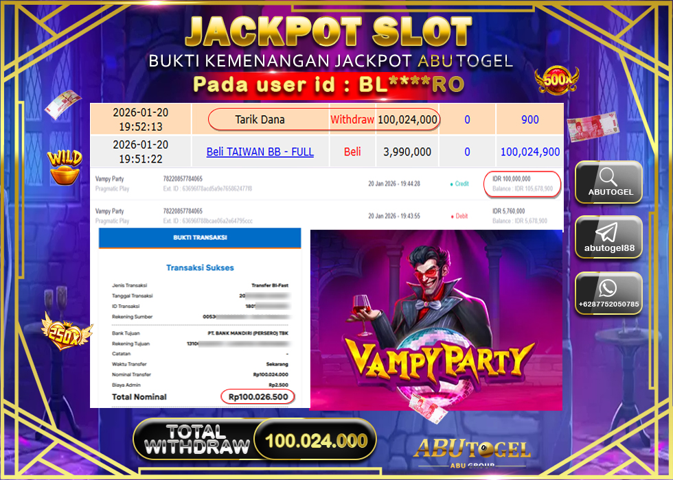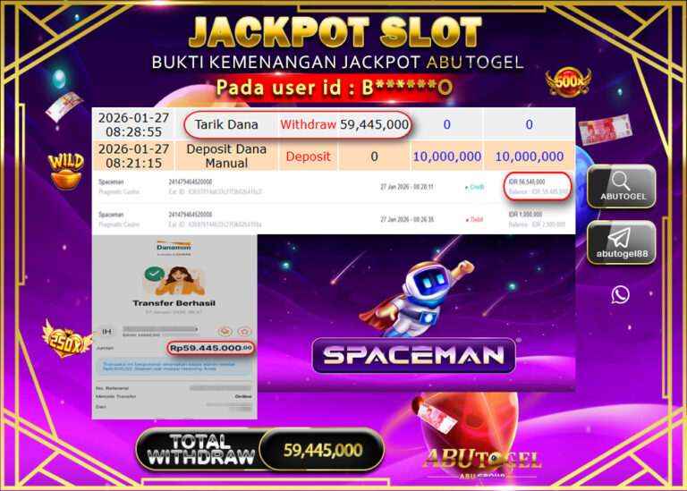 Bukti Jackpot Slot Online ABUTOGEL Selasa 20 January 2026 – ABUTOGEL adalah bo online terpercaya. Berikut ini kami berikan info bukti jackpot member ABUTOGEL yang sudah kami bayar lunas dalam permainan slot online.