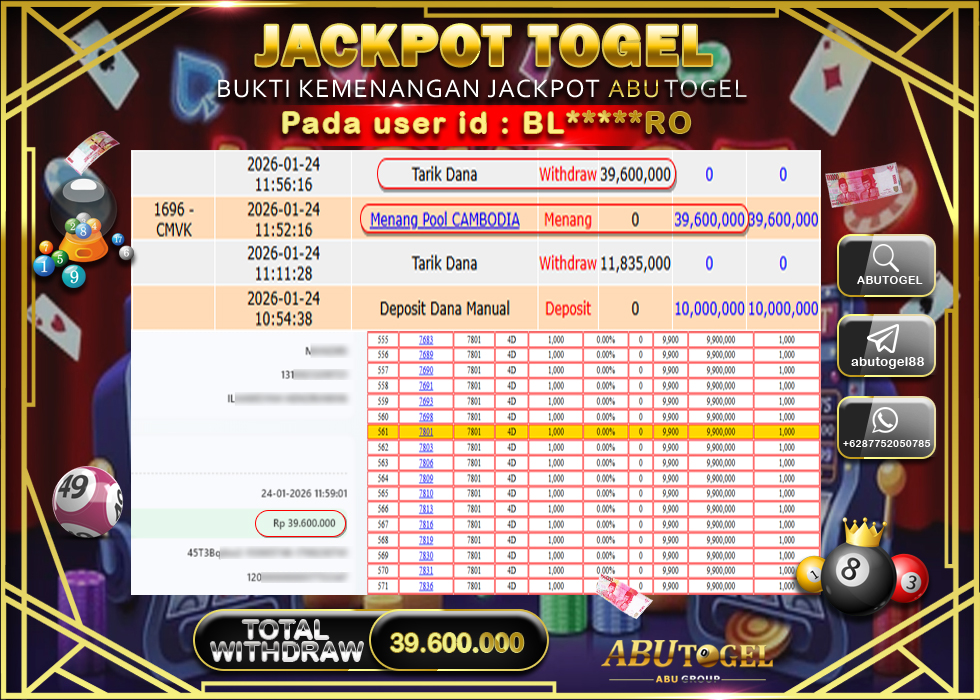 Bukti Jackpot Togel Online ABUTOGEL Rabu 28 January 2026 39,600,000 - LUNAS