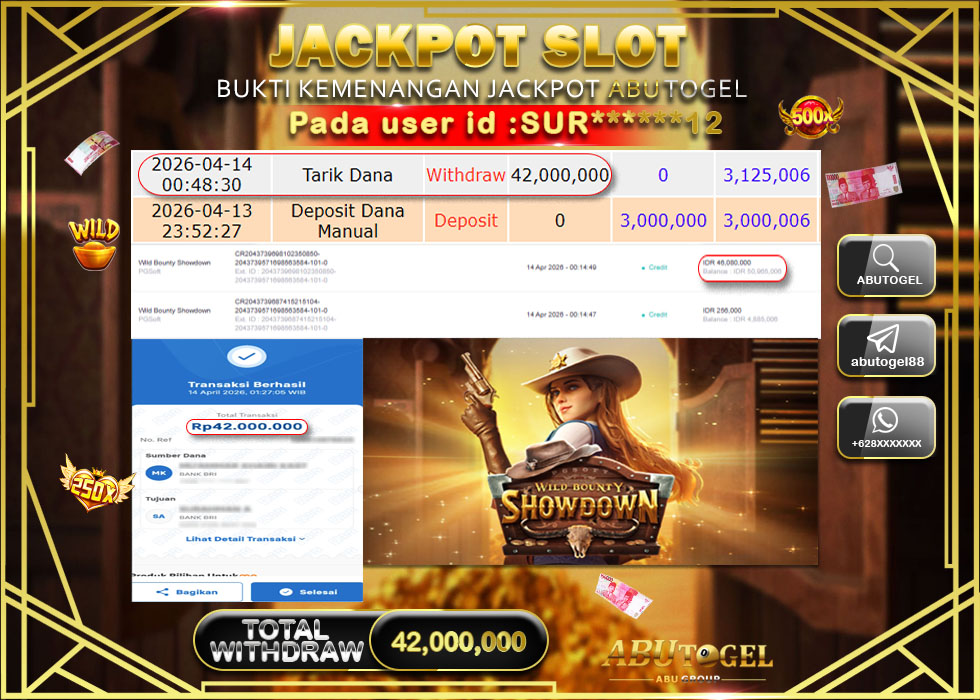 Bukti Jackpot Slot Online ABUTOGEL Selasa, 14 April 2026 RP 42,000,000 - LUNAS
