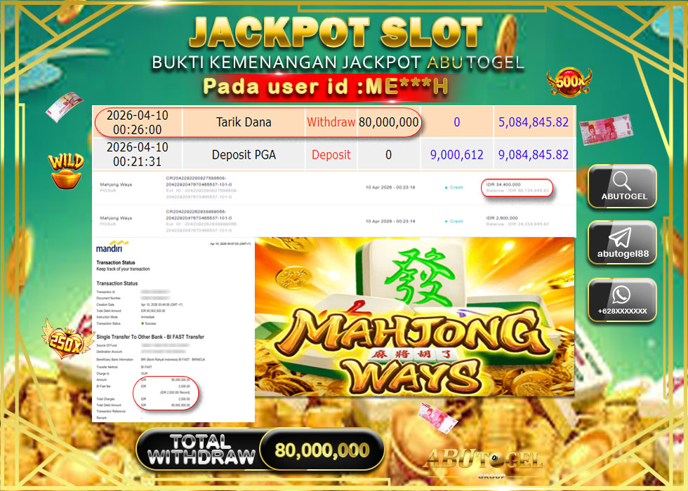 Bukti Jackpot Slot Online ABUTOGEL Jumat, 10 April 2026 – ABUTOGEL adalah bo online terpercaya. Berikut ini kami berikan info bukti jackpot member ABUTOGEL yang sudah kami bayar lunas dalam permainan slot online.