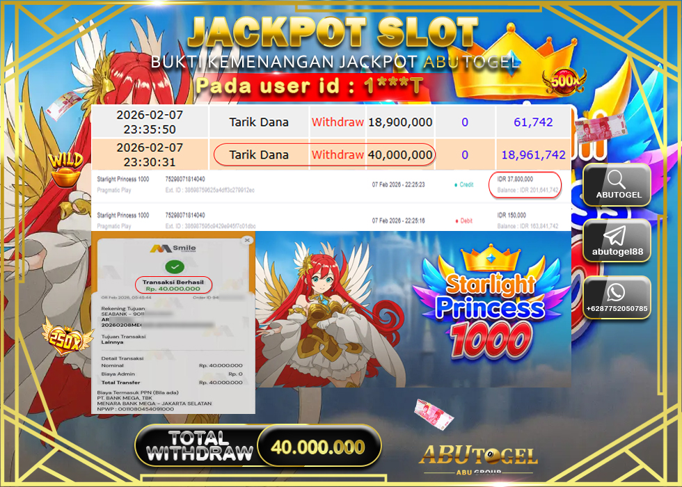 Bukti Jackpot Slot Online ABUTOGEL Minggu, 08 February 2026 – ABUTOGEL adalah bo online terpercaya. Berikut ini kami berikan info bukti jackpot member ABUTOGEL yang sudah kami bayar lunas dalam permainan slot online.