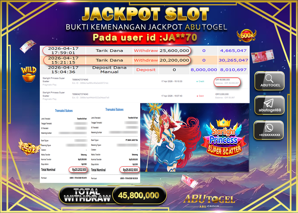Bukti Jackpot Slot Online ABUTOGEL Jumat, 17 April 2026 – ABUTOGEL adalah bo online terpercaya. Berikut ini kami berikan info bukti jackpot member ABUTOGEL yang sudah kami bayar lunas dalam permainan slot online.