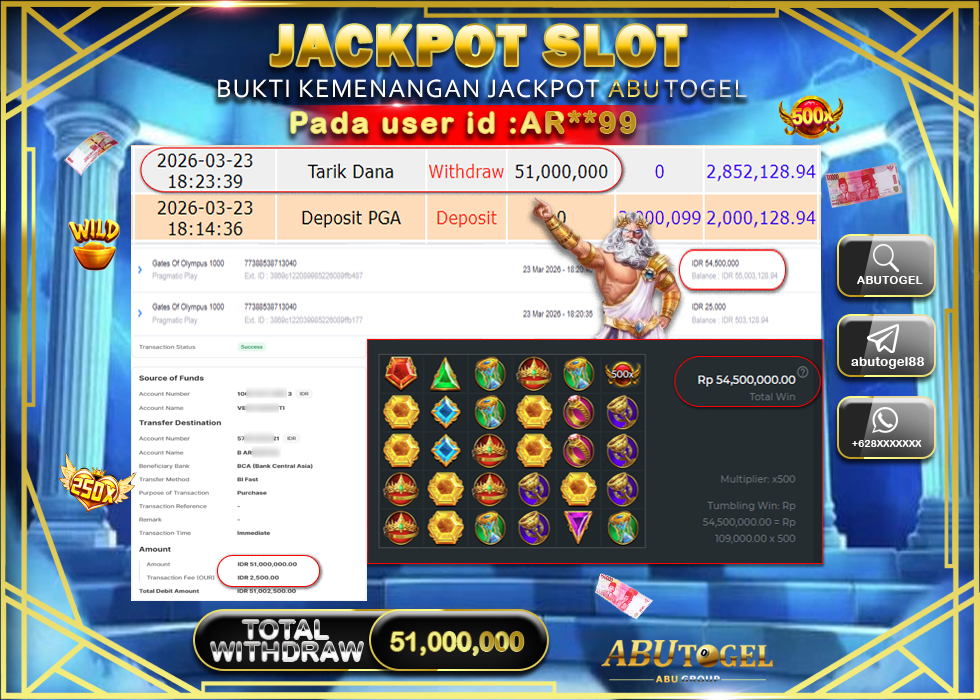 Bukti Jackpot Slot Online ABUTOGEL Senin, 23 Maret 2026 Rp. 51,000,000 - LUNAS